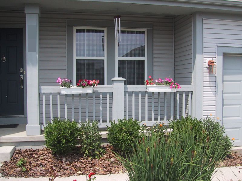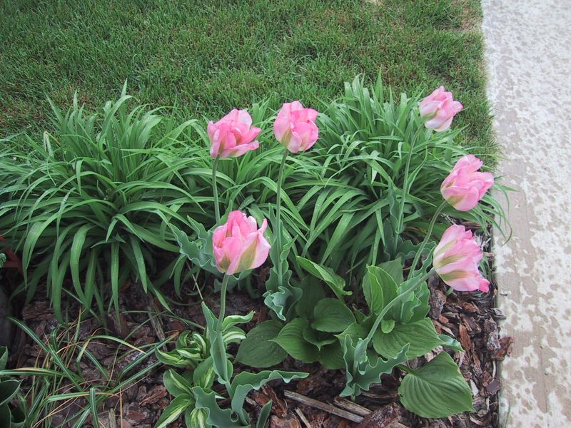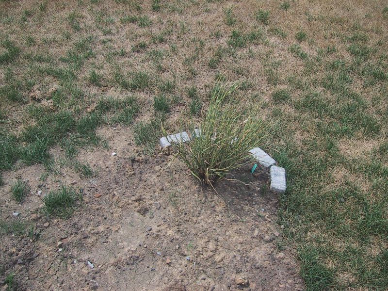 The first plant (zebra grass) along the patio.
